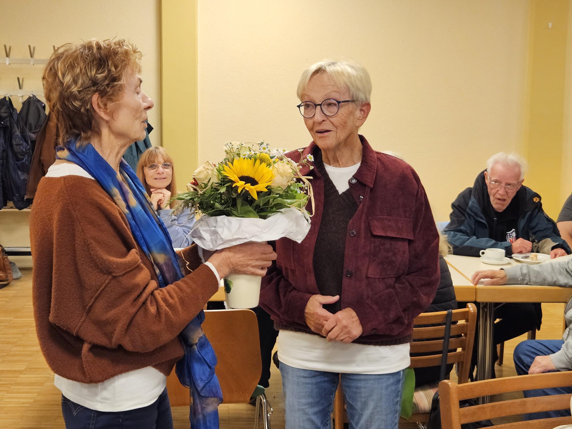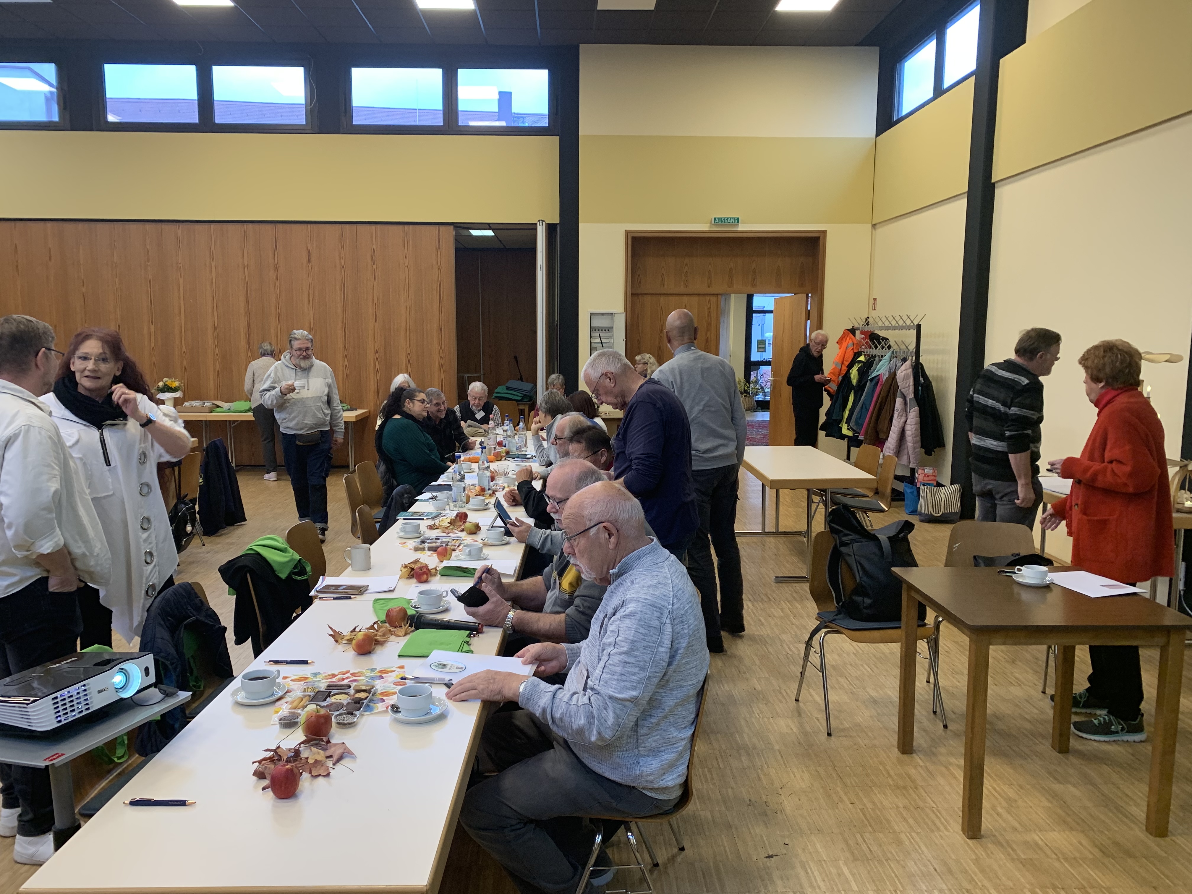 Nach vielen „Hallos“ und Umarmungen begrüßte unsere erste Vorsitzende Gaby Hub alle Weggefährtinnen und Weggefährten. Ebenso hieß sie die Ehrenmitglieder Christine und HaJo Müller sowie den ehemaligen ersten Vorsitzenden Gerhard Iser, jetzt Vorstandsmitglied im Bundesverband, herzlich willkommen.