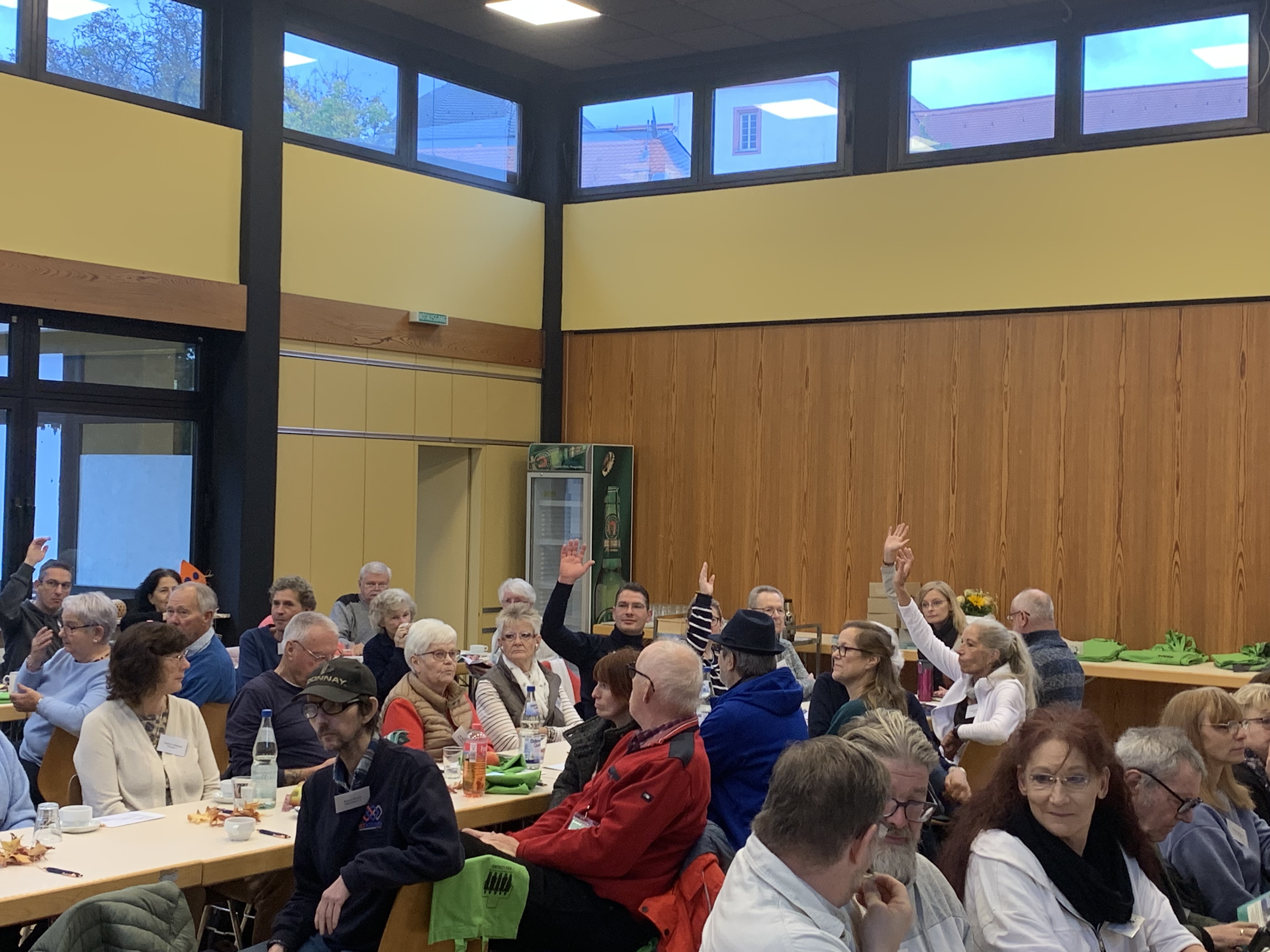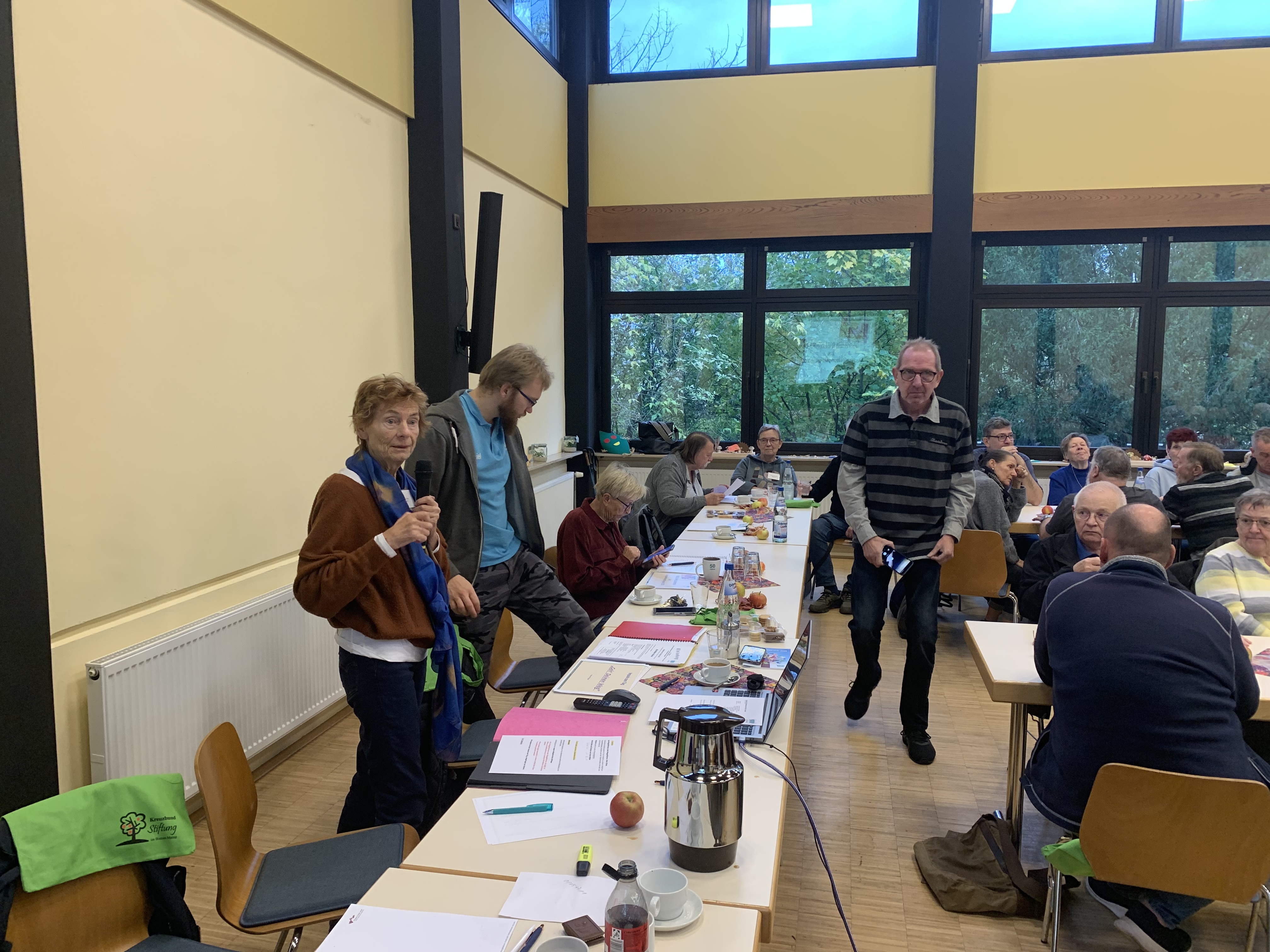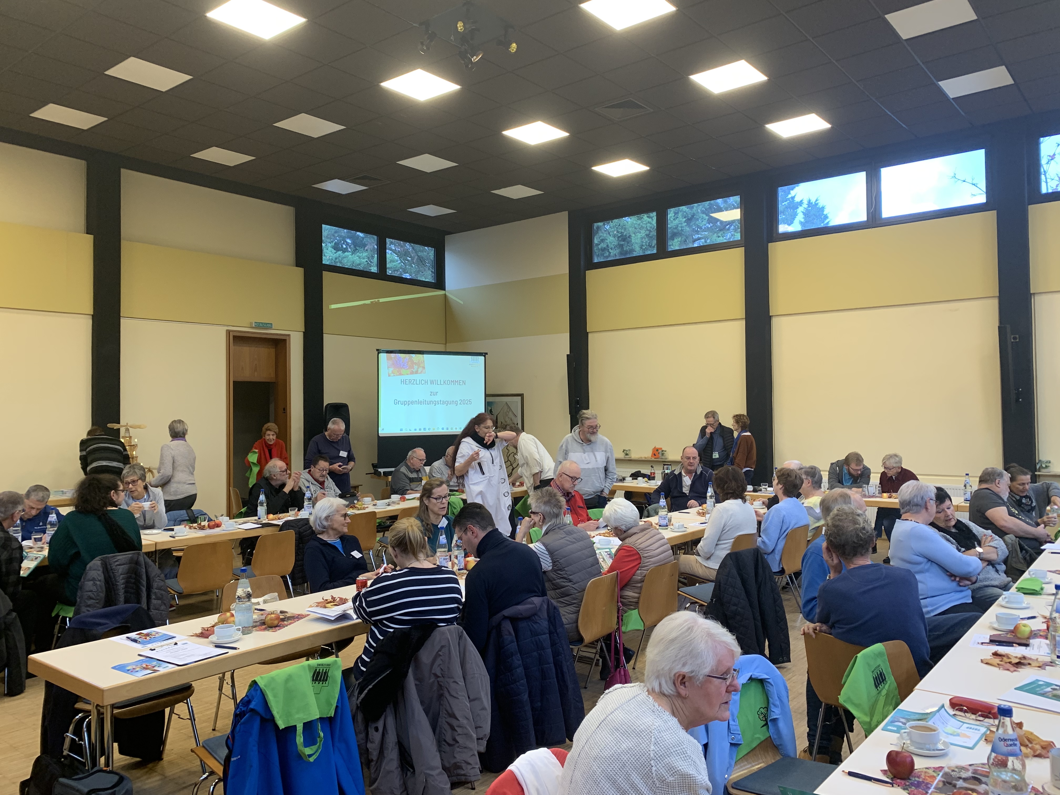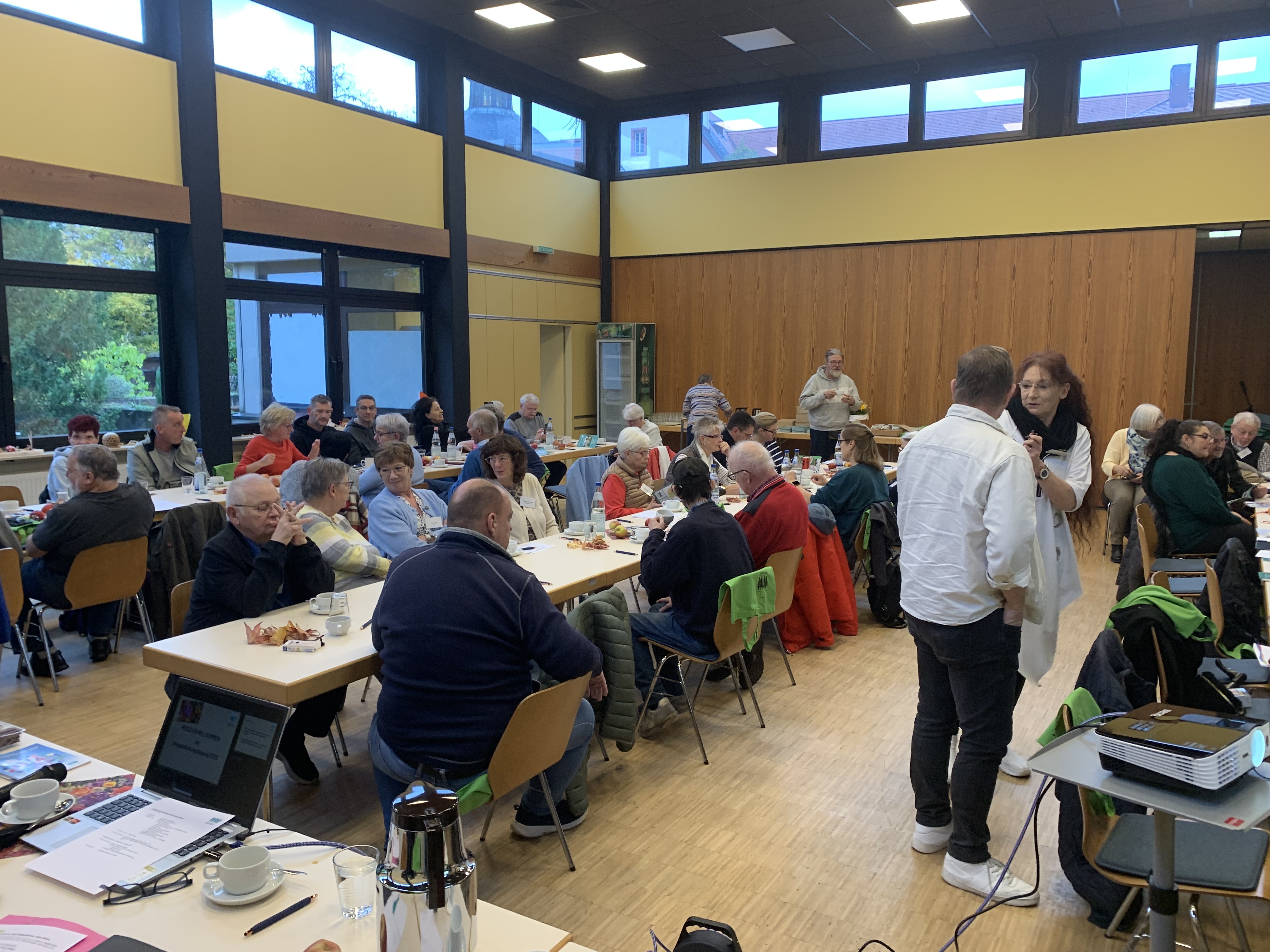 Die ersten Weggefährtinnen und Weggefährten trafen anfangs nur spärlich zur GLT 2025 ein. Aber dann erschienen sie „Schlag auf Schlag“, so dass unsere fleißigen Helfer nicht schnell genug zusätzliche Tische und Stühle aufstellen konnten.