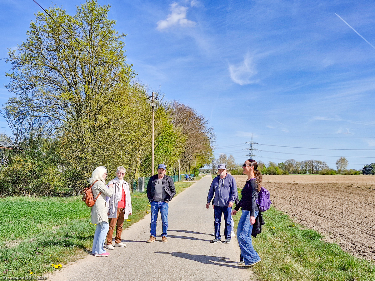 Unser Weg führte uns zunächst vorbei an den weiten Spargelfeldern, die bereits abgedeckt waren, damit die Sonne den Boden gut erwärmen konnte – ein sicheres Zeichen, dass der Frühling in vollem Gange ist. Im angrenzenden Wald zeigte sich die Natur schon in zartem Grün: die ersten Blätter sprossen, und ein leises Rascheln begleitete uns, während ringsum die Stille nur von den Flugzeugen am Himmel durchbrochen wurde.